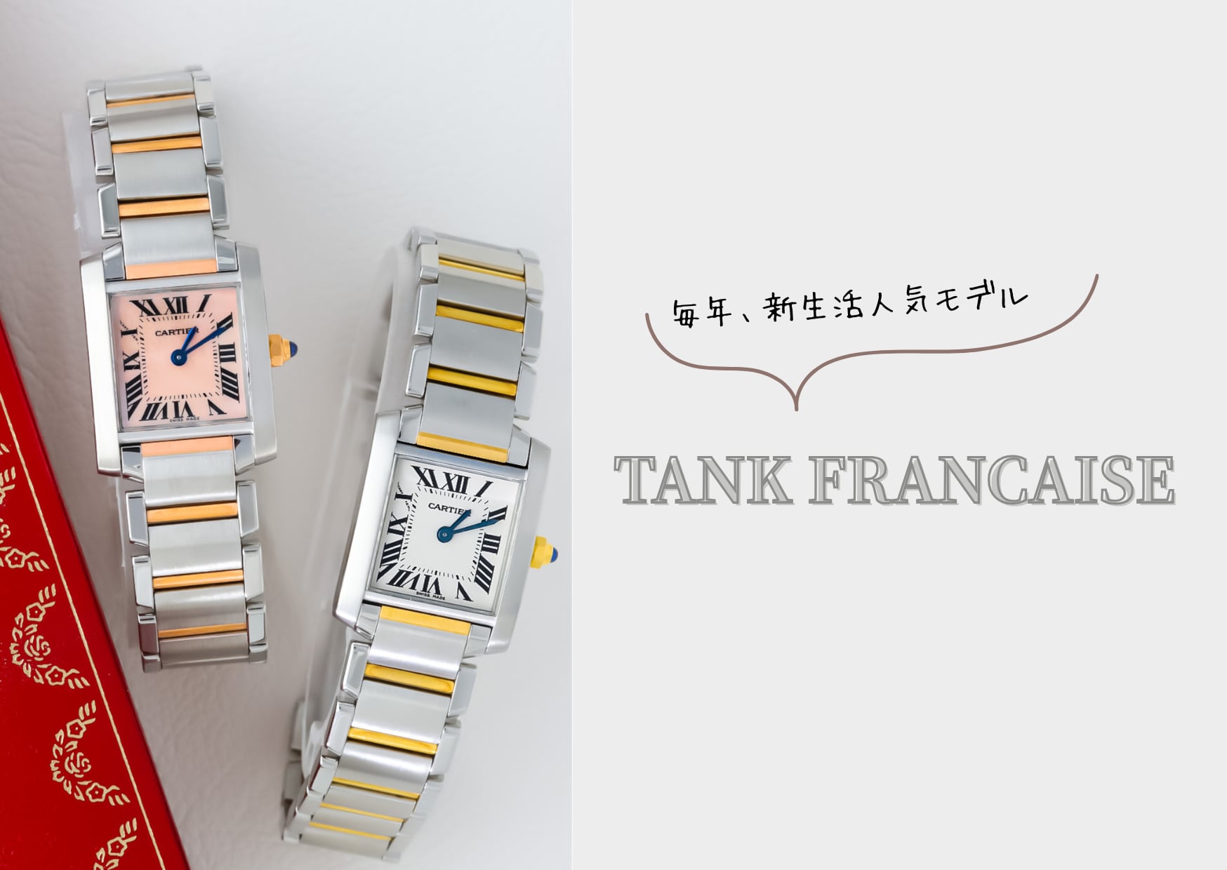 カルティエ タンクフランセーズ SM 純正ダイヤモンド WG レザー