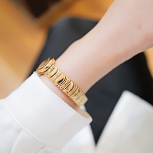 ブレスレット部分はふっくらとした立体的なデザインが女性の柔らかさを惹き立ててくれます。