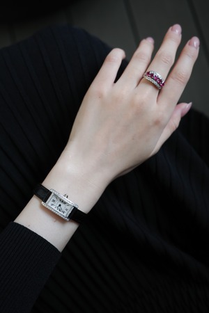 サイズ感はミニでも存在感あり、クールな中でもダイヤモンドの華やかさが美しいです。