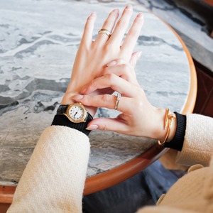 小さすぎないサイズ感と時刻も確認しやすい優れもの。腕元に優しくフィットするアイテムが魅力的