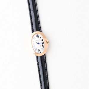 ミニサイズの小ぶりな印象は、余裕を感じるフォルムと18金の尾錠が愛らしい逸品